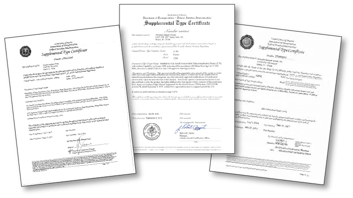 يعمل قسم هندسة منتجات إلكترونيات الطائرات عن كثب مع مكتب توثيق الطائرات التابع لادارة الطيران الفيدرالية أثناء جميع مراحل تطوير المشروع للتأكد من تطوير مجموعة توثيق كاملة ومتكاملة.